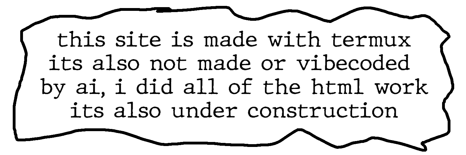 this site is made with termux its also not made or vibecoded by ai, i did all of the html work its also under construction